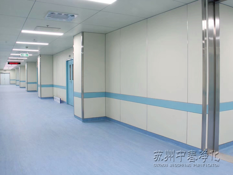 國內進行的無菌技術是通過多年的空氣培養結果,分析了它與手術后感染的關系,訂出了新的操作法與標準,即在消毒后的手術間內,置直徑9cm平皿于中心區,暴露幾分鐘后,經24h 37℃孵箱生長如果菌落不超過10個,且無致病菌,定為清潔手術室。再加上外置12mm保溫防撞隔音板材,保證絕對保溫,防撞隔音達到國際標準;內側防銹彩鋼板經6次真空離子防菌噴涂;走道及手術室均為無縫地板,以維持手術室無菌無塵狀態。