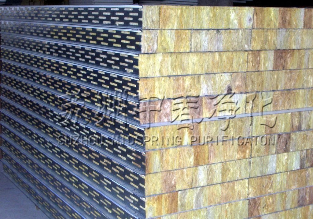 說明:以巖棉為原料制成的夾芯板,巖棉夾芯板充分發揮了巖棉芯材的獨特性能,在防火,保溫隔熱,吸音隔聲等方面有著顯著的功效。